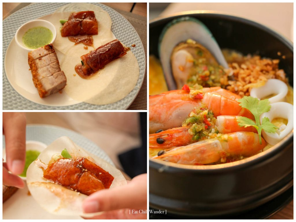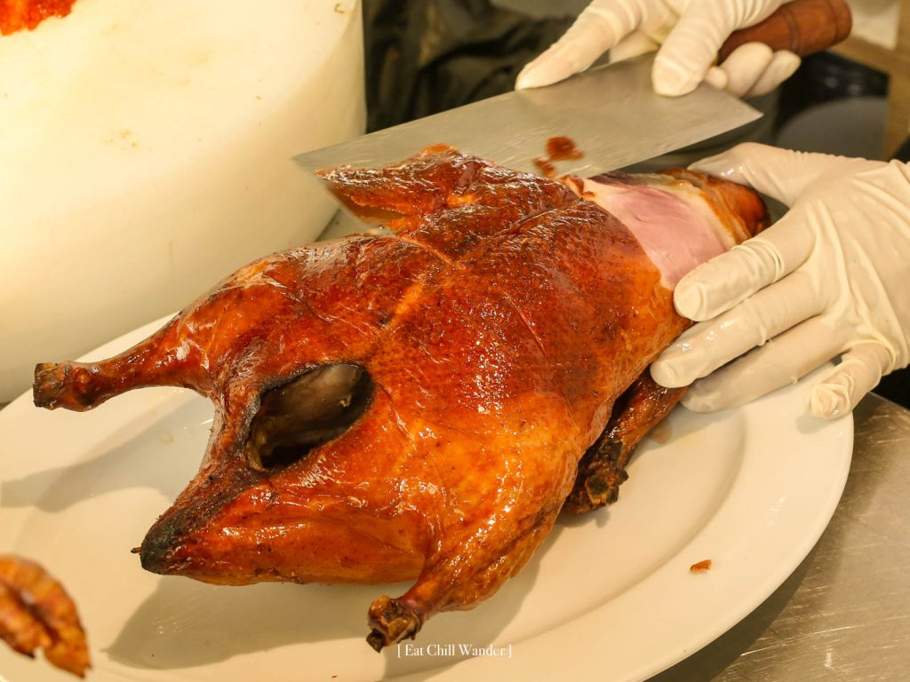 เป็ดย่างหนังกรอบ เสิร์ฟแบบเป็ดปักกิ่งค่ะ ส่วนเมนูไข่ตุ๋นทะเลเดือดนี่อย่าลืมสั่งนะคะ
