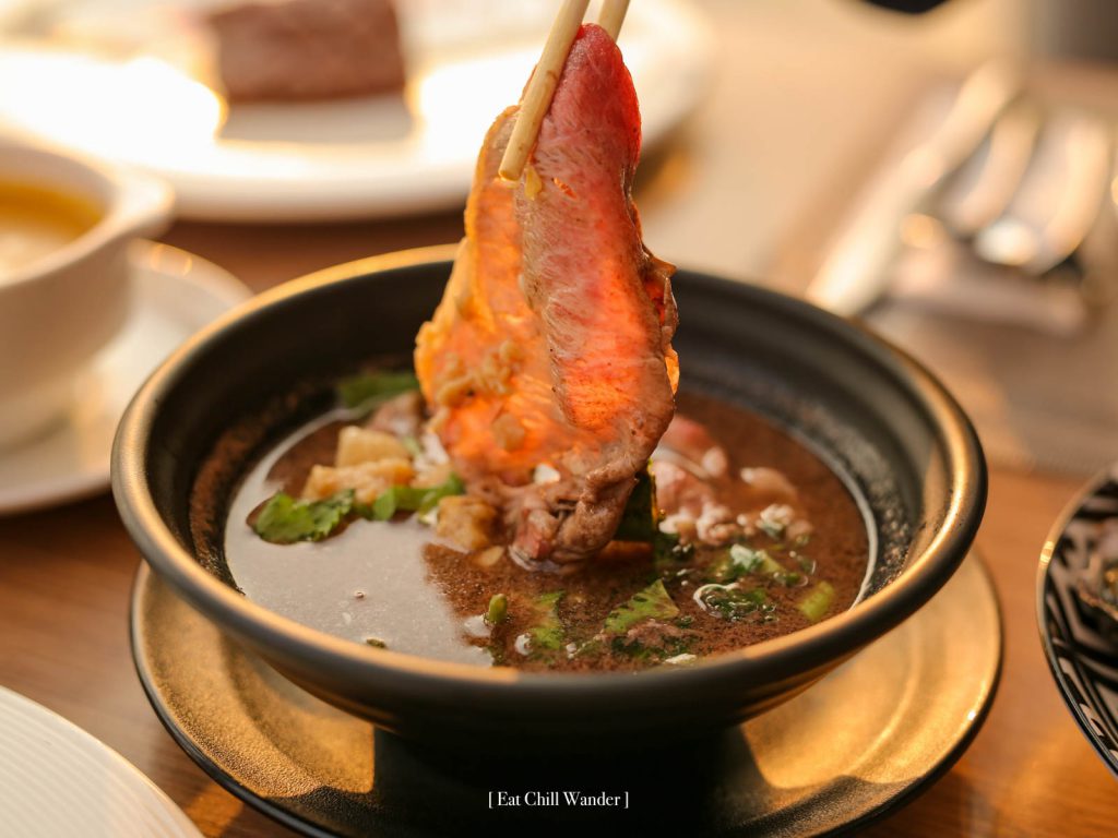มีฟัวกราส์ด้วยนะคะ สเต็กก็จัดจานสวย ส่วนจานที่ติดใจมากๆ คือ ก๋วยเตี๋ยวน้ำตกวากิวค่ะ