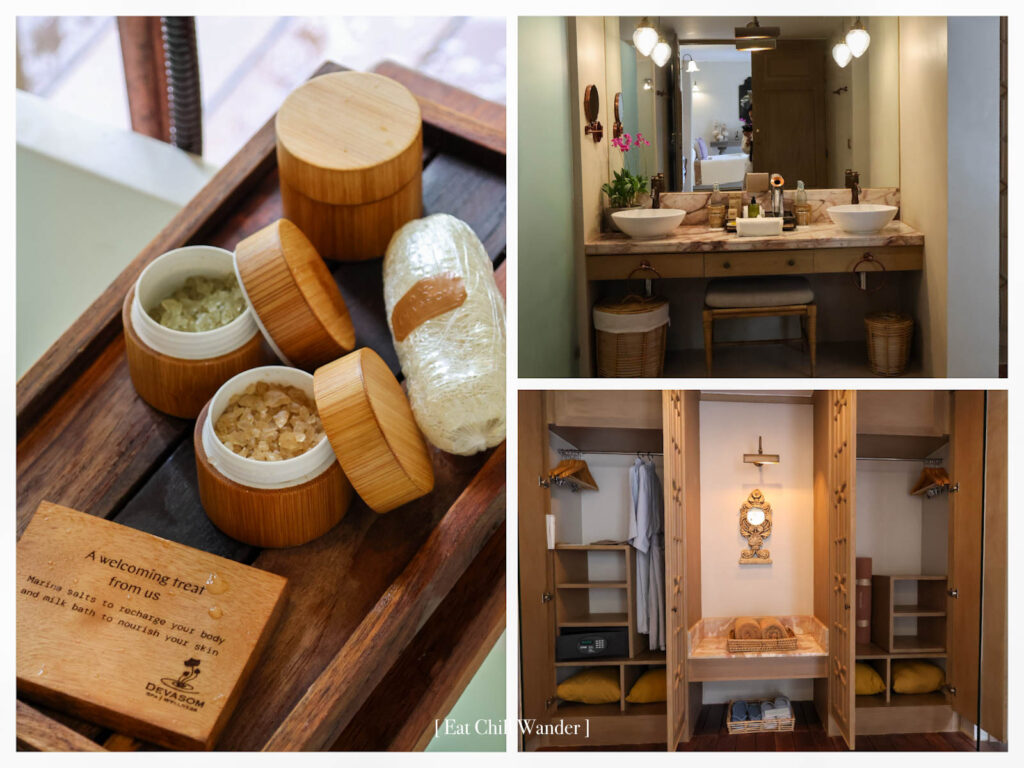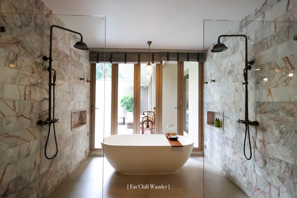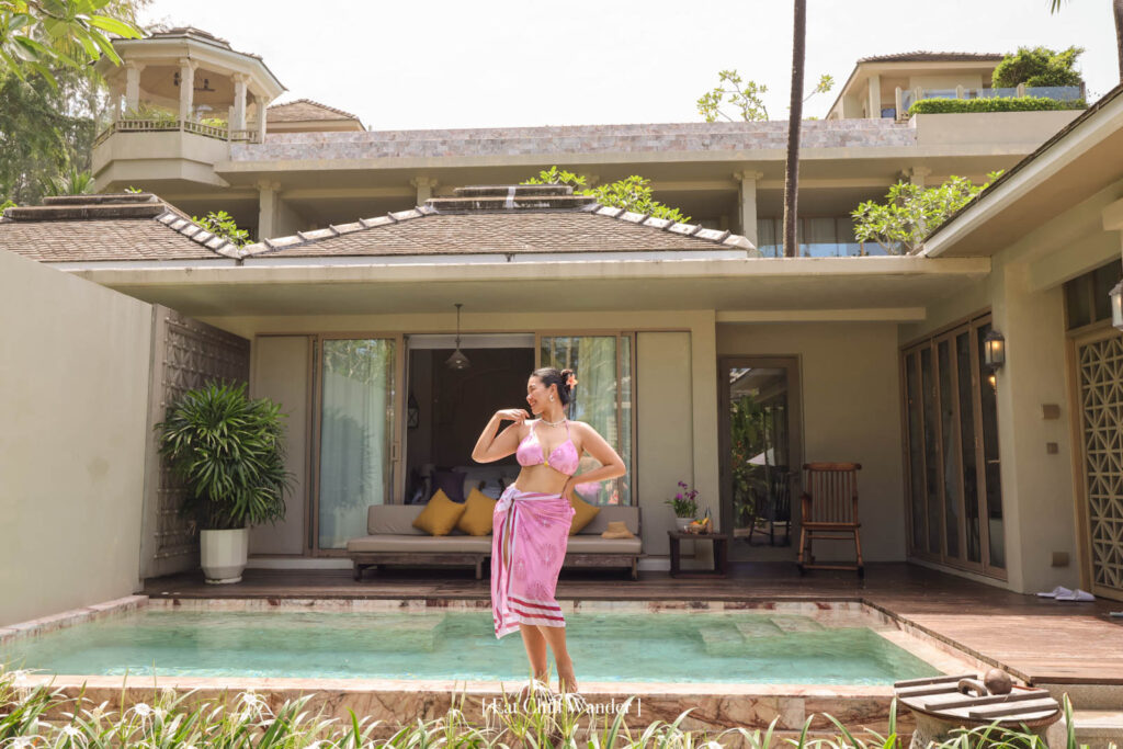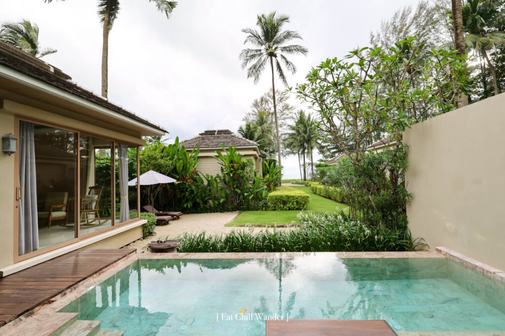 ซึ่งในครั้งนี้ เราพักในวิลล่าแบบ “Beach Pool Villa” ซึ่งแต่ละห้องเลย์เอาท์จะไม่เหมือนกัน เพราะได้แรงบันดาลใจมาจากหมู่บ้านชาวประมงที่อยู่ริมทะเลค่ะ ทั้งรูปร่างของสระน้ำ หรือ ตัวห้องนั่งเล่น ห้องนอน ก็จะแตกต่างกันไป แต่มีสิ่งอำนวยความสะดวกครบเหมือนกันทุกวิลลา และ มีขนาดพื้นที่ใกล้เคียงกันอยู่ที่ 150 – 160 ตร.ม. ค่ะ