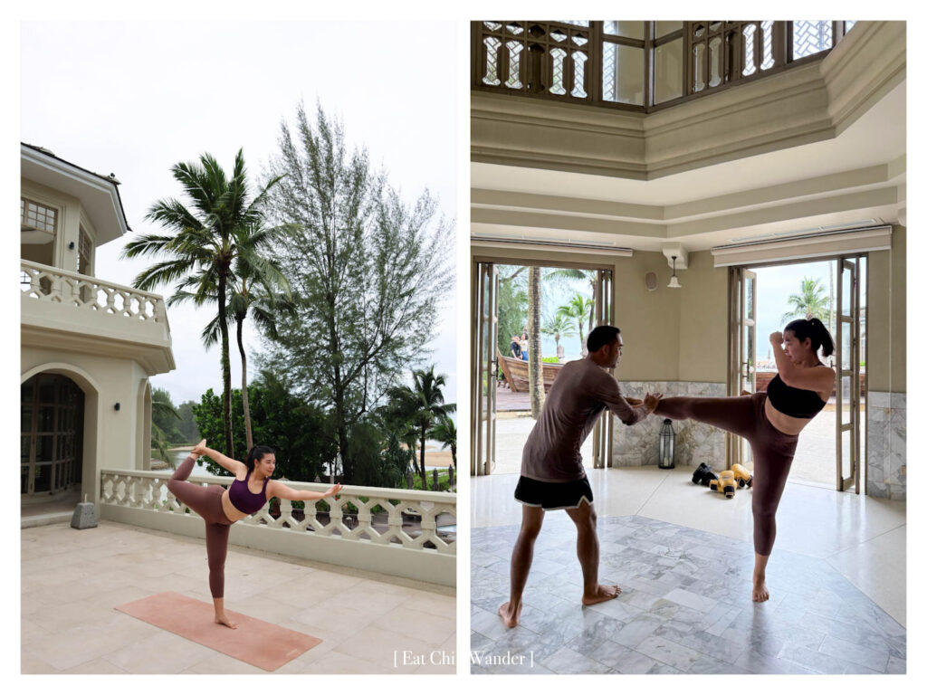ส่วนหอคอยที่เห็นอยู่ด้านหลังนี้เป็น Lagoon Tower ทั้งห้องชั้นล่างและชั้น 2 เราว่าออกแบบมาให้สงบมากเลยค่ะ มีเสื่อและบล๊อคโยคะเตรียมไว้ เราแอบมาเล่นโยคะตอนเช้าที่ชั้นบน วิวสวย บรรยากาศดีมากๆ ทั้งการสูดอากาศริมทะเล การมองออกไปไกลๆ ที่ทะเล การฟังเสียงคลื่น ทุกอย่างช่วยเสริมพลังและสมาธิ ทำให้เล่นโยคะได้อย่างสมบูรณ์มากๆ ค่ะ