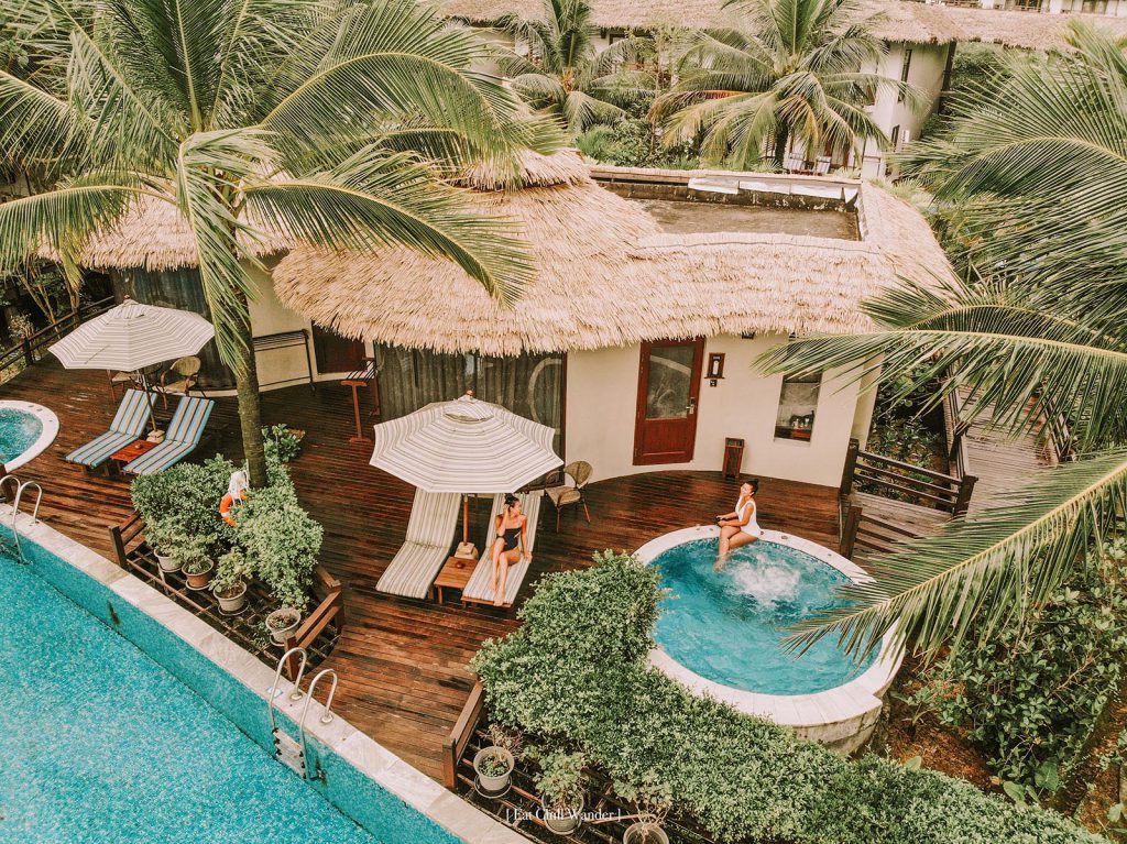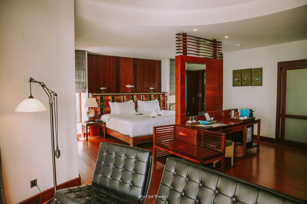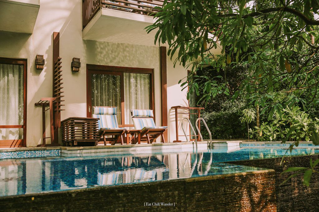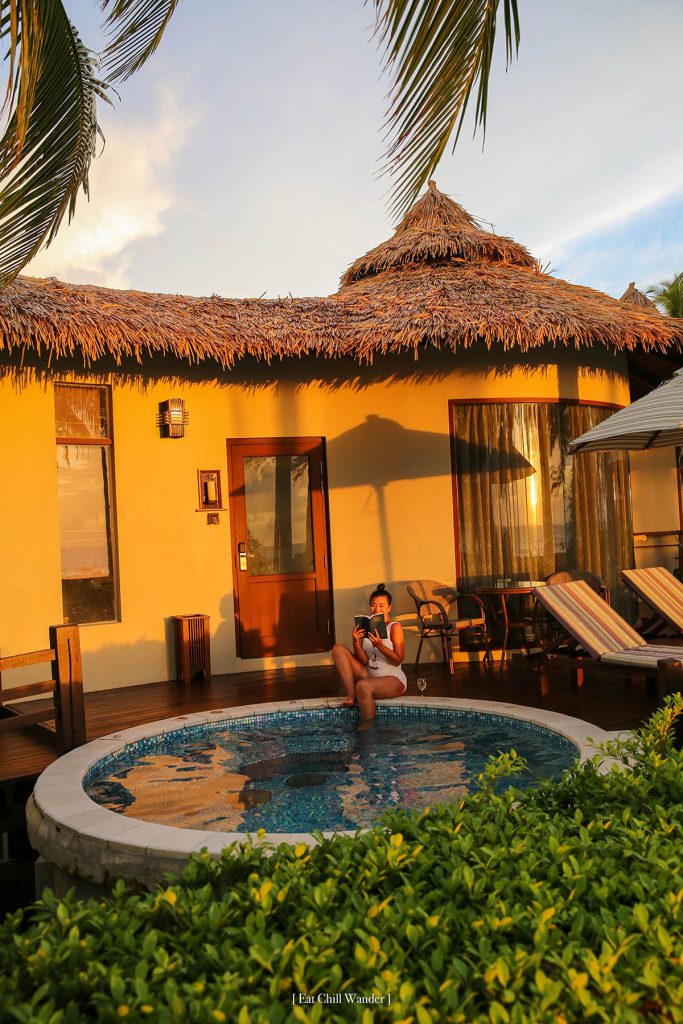 ครั้งนี้เราพักในห้องแบบ Oceanfront Jacuzzi Villa วิลล่าที่มาพร้อมอ่างจากุซซี่ขนาดใหญ่หน้าห้อง ทางลงสระว่ายน้ำ และ วิวทะเลค่ะ จะบอกว่าวิวพระอาทิตย์ตกจากหน้าห้องสวยมากๆ เลยค่ะ