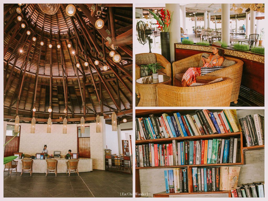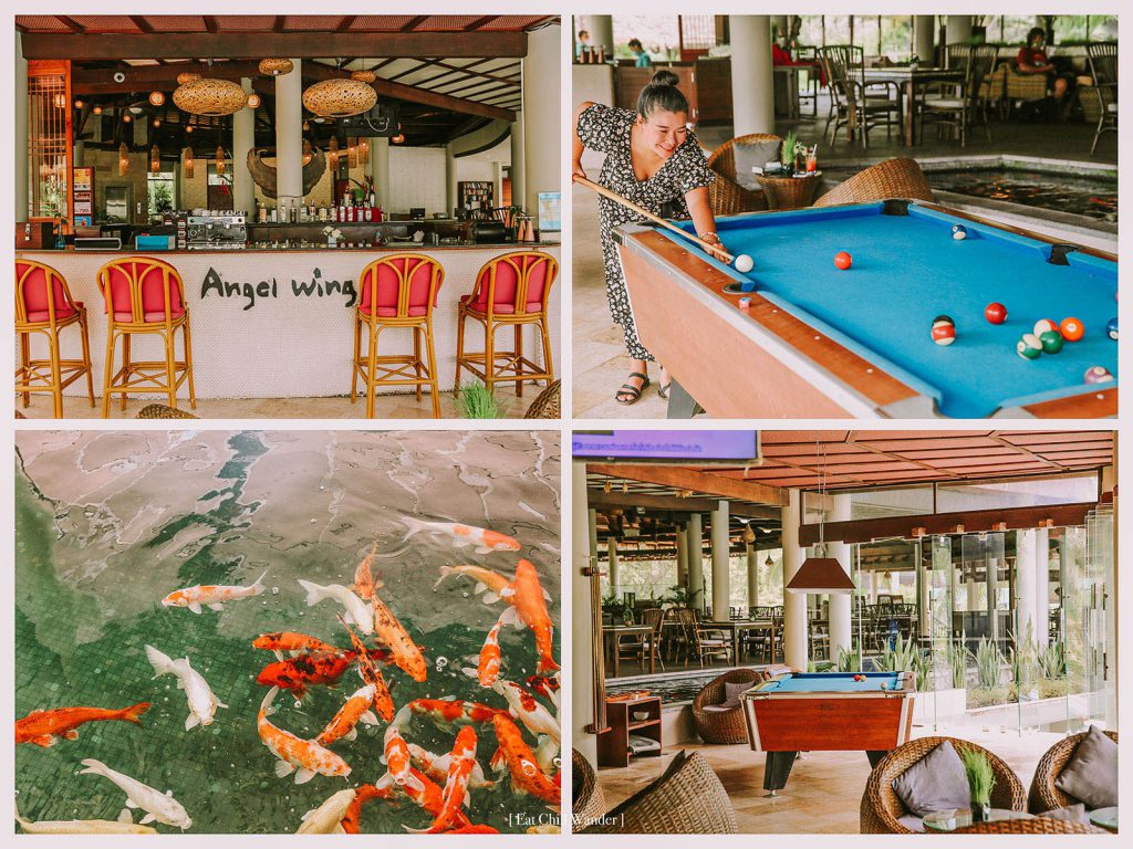 บริเวณล็อบบี้ แบบโอเพ่นแอร์ เราจะเริ่มเห็นได้ถึงเอกลักษณ์ของการตกแต่งรีสอร์ทแห่งนี้ บริเวณล็อบบี้ จะเป็นที่ตั้งของ Angel Wing Bar บาร์รับลมสบายๆ บรรยากาศดี ที่มาพร้อมโต๊ะพูลให้เล่น เสิร์ฟค็อกเทลเย็นๆ ชื่นใจมากค่ะ