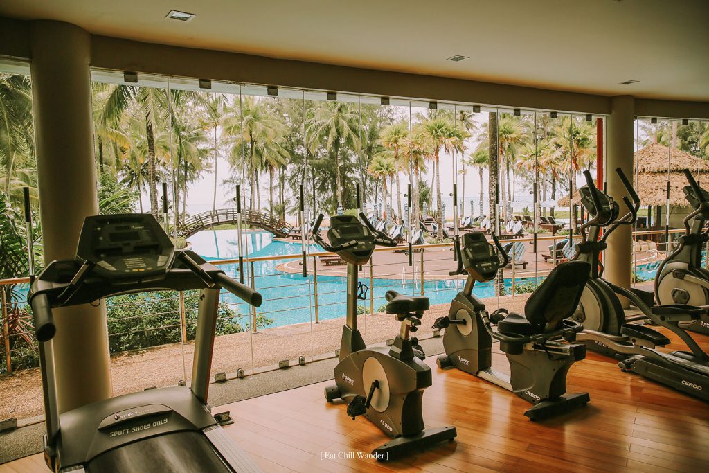 ฟิตเนสที่นี่ถือว่าใหญ่กว่าโรงแรมริมทะเลเครือใหญ่ๆ หลายแห่งเลยนะคะ ห้องกว้าง อุปกรณ์ครบครันค่ะ มองไปเห็นวิวสระว่ายน้ำและวิวทะเลไกลๆ