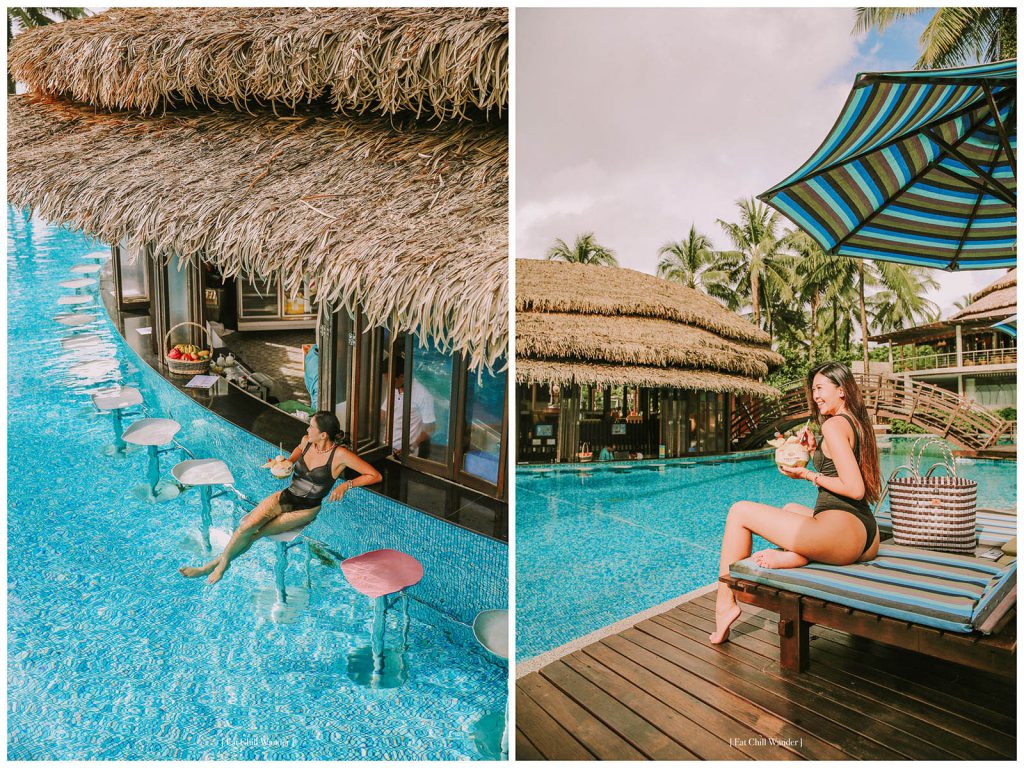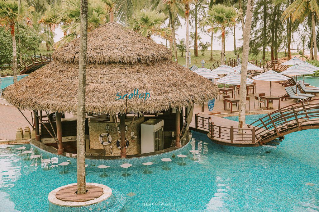 สระว่ายน้ำน้ำเกลือที่ใหญ่ที่สุดในประเทศไทย มีขนาดถึง 5000 ตร.ม. ออกแบบมาให้เชื่อมรีสอร์ททั้งหมด ทำให้มองไปทางไหนก็จะรู้สึกสดชื่นผ่อนคลาย มี Pool Bar ถึง 2 แห่ง ที่ทำให้เรานั่งจิบเครื่องดื่มเย็นๆ คลายร้อนได้เลย ใครที่อินกับ Life by the pool นี่จะฟินมากๆ