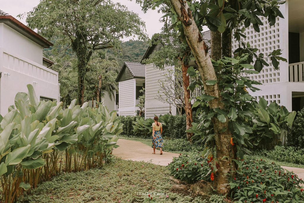 บรรยากาศโดยรวม ร่มรื่น เขียวชะอุ่ม มีการจัดสวนแบบทรอปิคอล เดินจากห้องไปสระว่ายน้ำ ไปหาดได้ชิวๆ