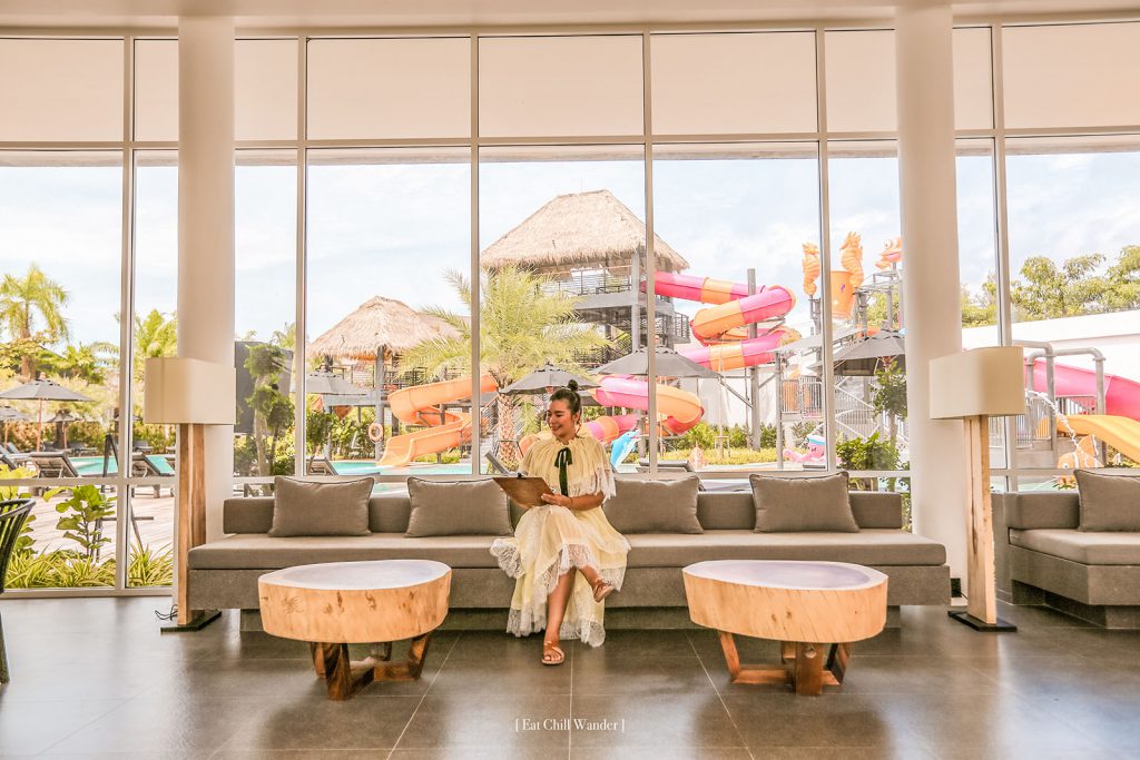 ล็อบบี้โอ่โถ่ง สบายตา ตั้งอยู่ติดกับถนนหลัก แต่เพียงเข้ามาก็จะได้รับการต้อนรับเป็นอย่างดี ด้านหลังเราก็จะเริ่มเห็นสวนน้ำเล็กๆ ของที่นี่แล้ว ทำเอาเรากับกลุ่มเพื่อน ตื่นเต้น พร้อมย้อนวัยกันไม่หยุด ใจไปอยู่ที่เครื่องเล่นสไลเดอร์ด้านหลังเรียบร้อย