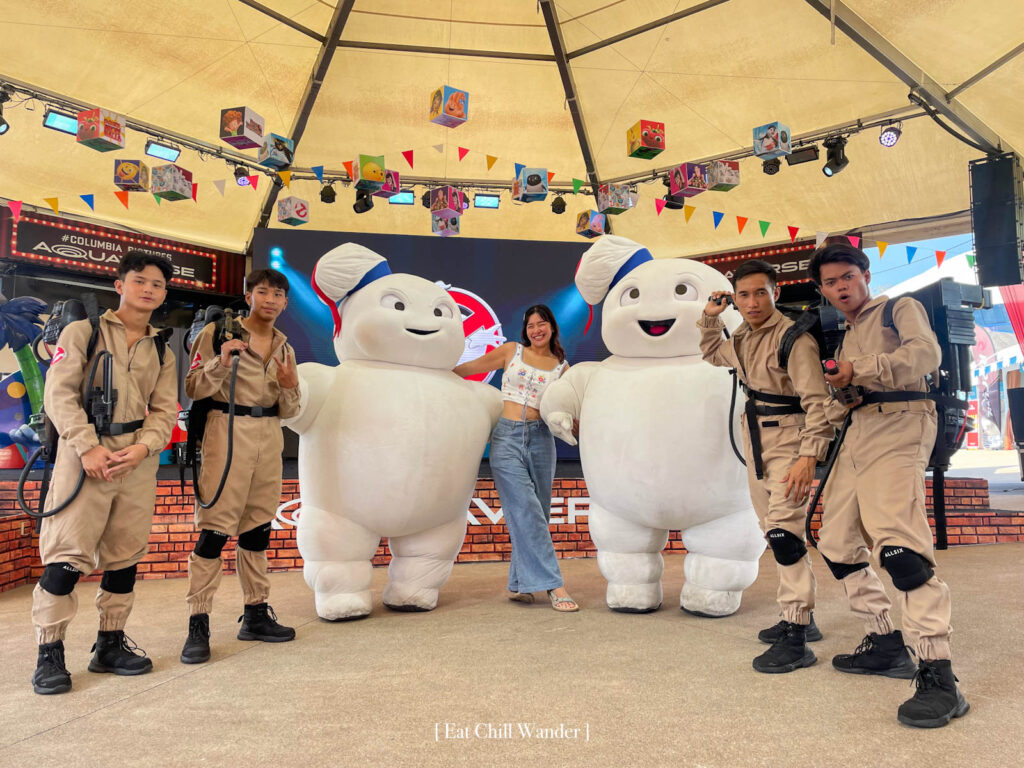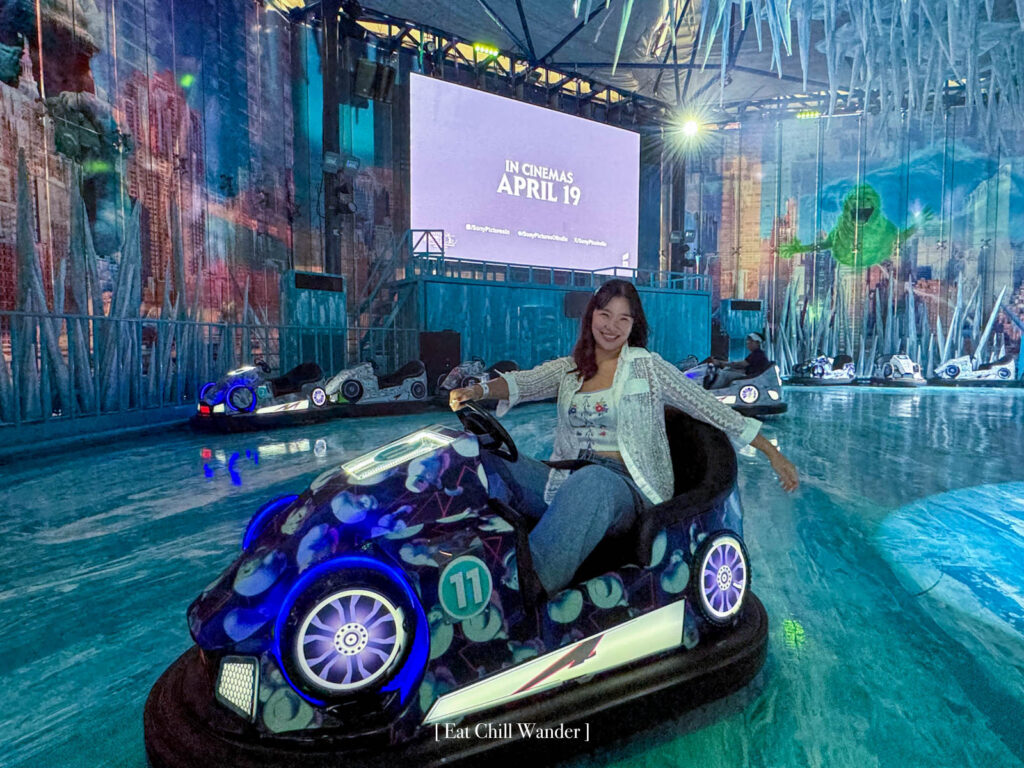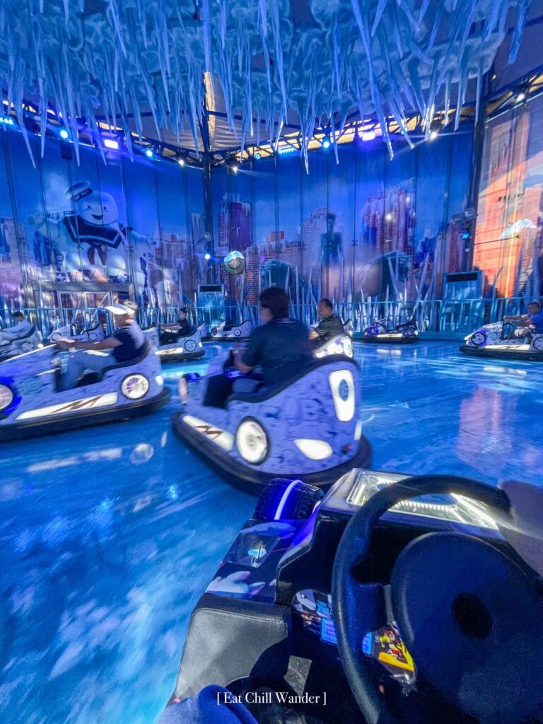 และล่าสุด ทาง Columbia Pictures Aquaverse เพิ่งเปิดตัวเครื่องเล่นใหม่ในธีม Ghostbusters ซึ่งทำออกมาได้สนุกและมีเอฟเฟคที่น่ารักมากๆ ค่ะ เครื่องเล่นนี้ ชื่อว่า Ghostbusters : The Frozen Empire Bumper Cars เป็นรถบั๊มในร่ม แอร์เย็นฉ่ำ ซึ่งเราจะเข้าไปอยู่ในฮอลล์มืดๆ และมีโฮโลแกรมเหล่าผีสุดน่ารักจาก Ghostbusters แว้ปๆ ลอยๆ อยู่ ถือเป็นรถบั๊มที่ตื้ดมากค่ะ ด้านในตกแต่งเหมือน Frozen Empire ตามธีมภาพยนต์ตอนล่าสุด แสงสีเสียงครบ มาเล่นกับเพื่อนๆ สนุกมากๆ — เครื่องเล่นนี้ ใครไม่อยากเปียกก็เล่นได้ค่ะ ต้องซื้อบัตรแยก เล่นได้ 8 นาทีเลย