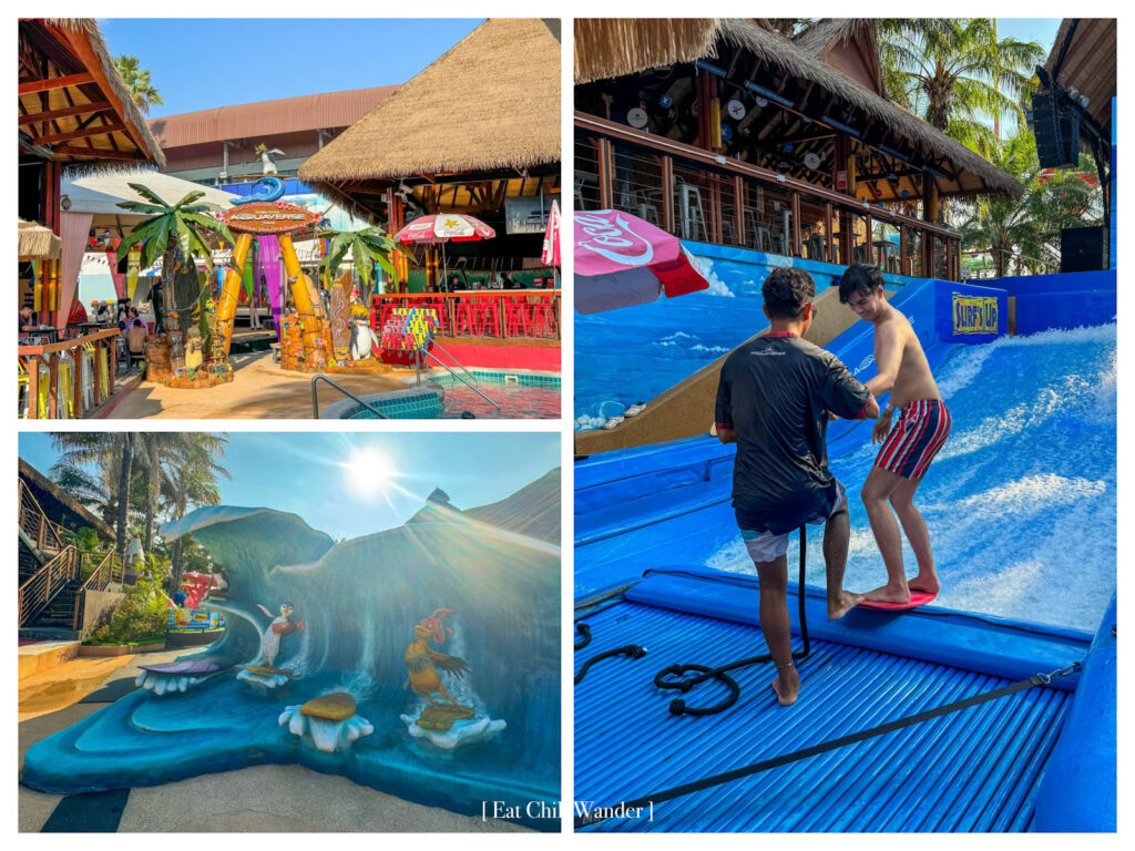 เครื่องเล่น Flow Rider สองอันที่ทำให้คุณได้ลองโต้คลื่น โดยเค้าจะมีเจ้าหน้าที่คอยดูให้ตลอดเลยค่ะ ใครอยากลองเซิร์ฟ ห้ามพลาดเลย