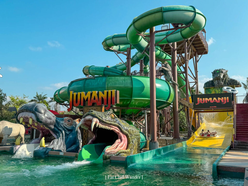 เข้าสู่โซนเครื่องเล่นหวาดเสียวอันแรก หนังเรื่องจูแมนจี้เป็นหนังที่นัทชอบตั้งแต่เด็กๆ เลยและโซนนี้ก็ชอบมาก ธีมคือการไปเผชิญหน้าสารพัดสัตว์เหมือนในหนังเลย ก็จะมีสไลเดอร์ 3 อัน ที่เส้นทางคนละแบบ แต่ร้องกรี้ดแรงมากทั้งสามอันเลย โดยเฉพาะ Jaguar Mountain ที่ดร๊อปลงมาแล้วพุ่งขึ้นท้องฟ้าสูงถึง 18 เมตร เป็นอันที่สนุกมากๆ อีกอันที่สนุกคือ Viper ที่จะดูดเราเข้าไปในกระแสน้ำวน — โซนนี้เดินขึ้นไม่สูงมาก ประมาณ 2 ชั้นครึ่ง เลยเล่นซ้ำไปหลายครั้งเลยค่ะ