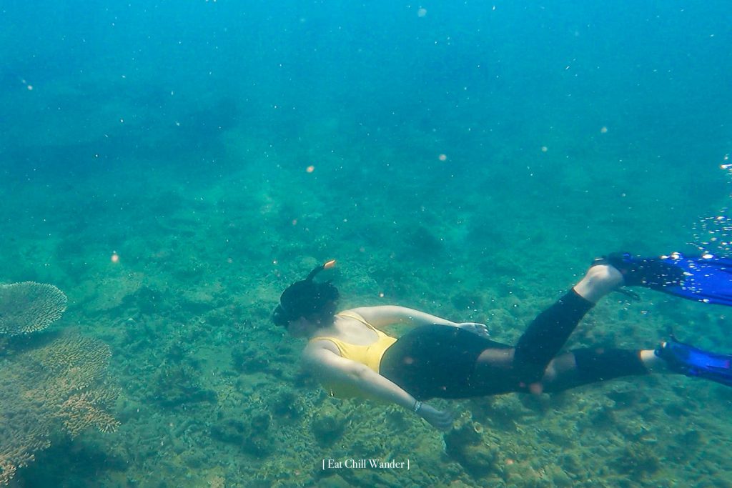 จุดดำน้ำที่พาไปก็ถือว่า สมบูรณ์กว่าที่คิดมากเลยค่ะ อาจจะเพราะไม่ได้รับนักท่องเที่ยวเยอะๆ เหมือนเกาะอื่น เลยมีฝูงปลาและปะการังเยอะมากเลยค่ะ ตรงนี้เซอร์ไพรส์มาก