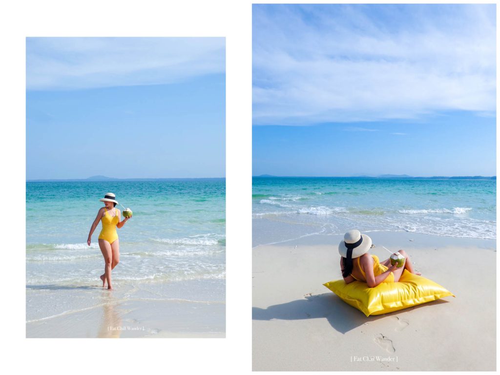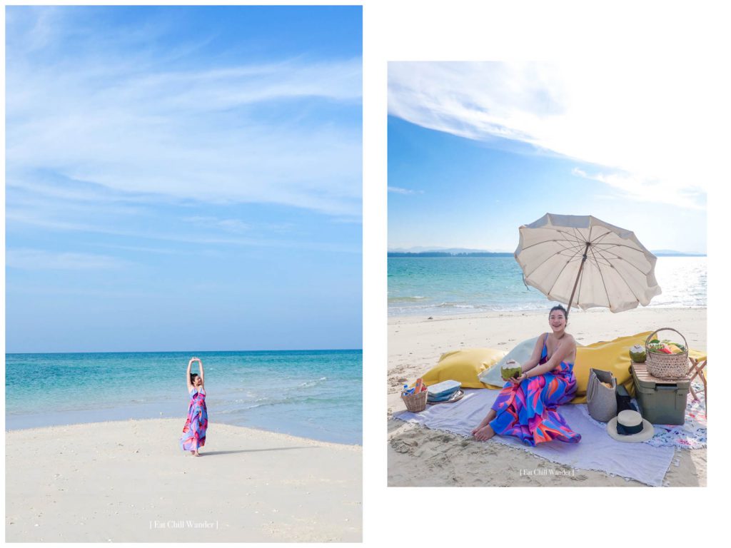 พักผ่อนกันจนพอใจ ส่วนตัวเราใช้เวลาราวๆ 2 ชั่วโมง แต่จะอยู่นานหรือไม่นาน แนะนำให้คุยกับทางทัวร์เลย ว่าเราแค่อยากลงมาถ่ายรูป หรือ ลงไปนั่งๆ นอนๆ นานๆ อย่างนัทชอบแบบนี้อยู่แล้ว ก็จะแฮปปี้ที่ได้อยู่บนเกาะนานๆ ค่ะ ช่วงที่ไปเป็นช่วง ธันวาคม ลมเย็นมาก แล้วน้องไกด์กางร่มให้แบบ บังแดดพอดี นั่งในร่มเลยไม่ร้อนเลย