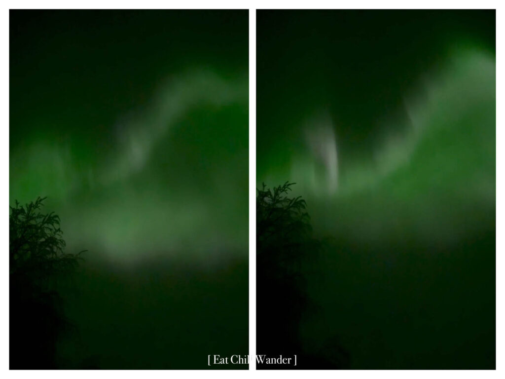 พอถึงเวลาฟ้ามืด วันนี้เราก็ออกไปล่าแสงเหนือกันค่ะ การล่าแสงเหนือนั้น หากเราเข้าใจ ก็จะสามารถไปลองขับตามหากันเองได้ค่ะ — ไปกับทัวร์มีข้อดีตรงที่ไกด์จะเป็นคนหาให้เลย ไม่ต้องขับเอง หลายทัวร์การันตี ถ้าไม่เห็นเค้ายินดีให้มาใหม่จนกว่าเจอเห็น แล้วที่สะดวกสบายที่สุดคือทางทัวร์เป็นคนถ่ายรูปให้ค่ะ << อันนี้สารภาพเลยว่า รอบนี้เป็นครั้งที่นัทเห็นแสงเหนือเต้นสวยมากกกกก แต่ไม่สามารถถ่ายมาได้ เพราะ ข้างนอกมันหนาวมากๆ จนการออกไปตั้งกล้องถ่ายคือทรมานมาก กว่าจะเซ็ตกล้องให้เสร็จ