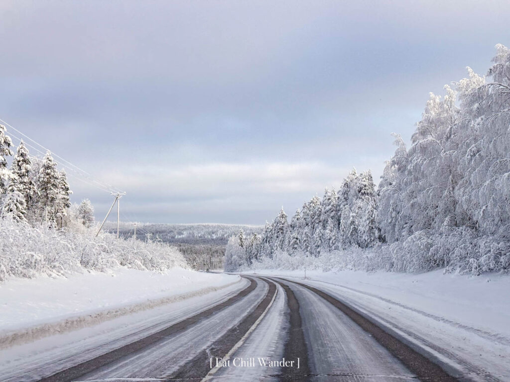 มาถึงวันแรก เราเช่ารถขับออกมาจากสนามบินค่ะ ถนนของที่นี่ขับง่ายและมีการเคลียร์หิมะ ส่วนใหญ่รถจะมาพร้อมยางฤดูหนาวอยู่แล้ว แต่ยังไงก็ต้องขับด้วยความระมัดระวังนะคะ เพราะบางครั้งถนนอาจจะเป็นน้ำแข็งแล้วอาจจะลื่นได้ Speed Limit ของที่นี่ค่อนข้างต่ำค่ะ เราขับออกมาปุ๊ปเป็นช่วงเย็นแล้ว เราเลยออกมาแล้วแวะ Santa Claus Village ก่อนเลย